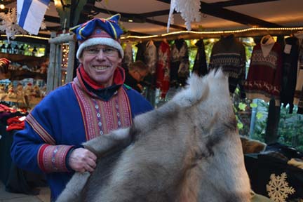 (clockwise) Hot lunch in Rüdesheim; Fur from Finland at Rüdesheim’s Christmas Market of the Nations; “Hallo” from the gnomes in Rüdesheim; Placing a phone call to the Christkind in Speyer