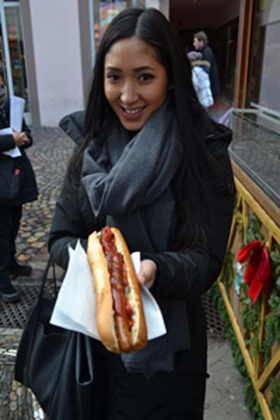 Christmas Markets first appeared in Strasbourg in 1570, making this German/French town the location of one of the oldest markets in Europe. Although much was similar to the Christmas Markets we saw in Germany, here the food vendors offered toasted baguettes topped with cheese as the warm comfort food, instead of the ubiquitous wursts in the German markets.