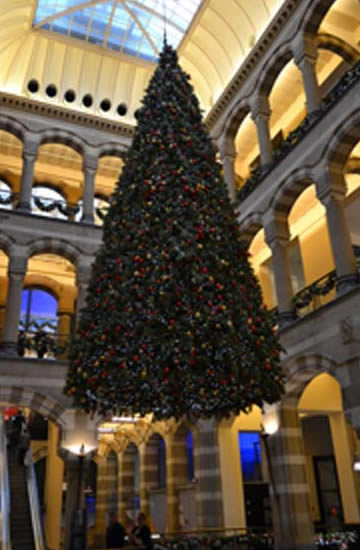 Fortified with a sumptuous on-board breakfast buffet, including an omelet station and daily vitamin “shot,” we departed the ship for an informative canal cruise, a panoramic city bus tour of Amsterdam with an up-close look at a local working windmill, and free time for exploring. Although there were no Christmas markets in Amsterdam, there were plenty of opportunities for shopping near the central train station, and street entertainment in Dam Square: a saxophone player, giant bubble maker, dancing dinosaurs, and impromptu yoga. Just be sure to watch out for the numerous killer bicycles that demand the right-of-way.