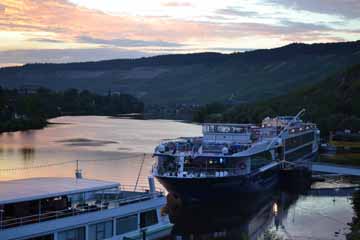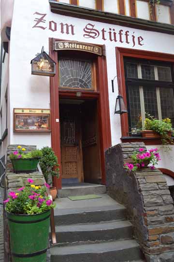 The Moselle joins the Rhine at Koblenz, an important center of trade during the Middle Ages. An imposing statue of Kaiser Wilhelm I mounted on a horse dominates the Deutches Eck (German Corner) where the two rivers meet. We arrived just before dinner, with enough time for a short walk into the square to see the many shops and restaurants. The fortress Ehrenbreitstein stands on the opposite bank of the river and provides a beautiful panoramic view of the area.