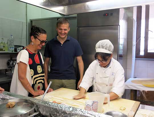 Following the party, he recovers the next morning just in time for breakfast, visiting the Boqueria Market where he discovers all varieties of fresh fish, fruits and vegetables; he ends up helping a market restauranteur and his brothers with the cooking, but says because of the tiny booth, “If my family worked here, we wouldn’t last five minutes.”