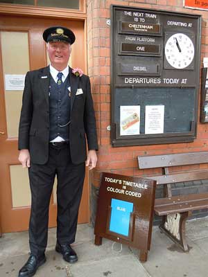(left) Conductor on the Cheltenham Flyer, historic steam train of the Gloucestershire Warwickshire line of the British Great Western Railway.