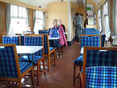 Alas, in 2011 contemporary trains in Britain did away with the last of their full-service dining cars, replacing them with airline-type meals served at the seats of first-class passengers and microwaved snacks sold in the buffet car for everyone else. But there’s hope for the future: In 2013 the First Great Western Railway re-introduced full-service “Pullman dining,” with fine wines and locally-sourced foods, on the UK’s only remaining regularly scheduled train with a real restaurant car. But, strangely, the dining services don’t operate on weekends or public holidays!