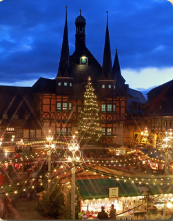 Dominated by its 12th-century castle, Wernigerode’s annual Christmas market has a fairy story backdrop: a 15th-century town hall, half-timbered houses and a 35-foot-tall Christmas tree. The stalls serve traditional food and drink, hand-made toys and ornaments for the home; evenings are filled with concerts of seasonal music. From December 15 to January 8, 2013, the Castle hosts its own special Winter Market. Children meet a fairy at 3 p.m. and receive presents from St. Nikolaus (Santa Claus) at 4 p.m. They also love to ride the Christmas train in a historic carriage, pulled by a steam engine through the snow-covered countryside.