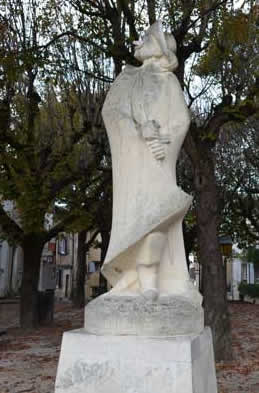 Unfortunately, Cyrano’s famous stone nose is routinely broken off by admiring fans. So a new colorful bronze Cyrano with a more permanent nose was erected in 2005 in the Place Pelissiere, in the shadow of the picturesque church of Saint-Jacques.