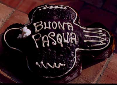 The Easter bread most popular throughout all of Italy is a specialty originally from Lombardy—the columba di Pasqua (or columba pasquale), a sweet yeast bread full of candied orange peel, raisins, and almonds, made in the shape of a dove. Some of the fancier columbe have pockets of orange- or champagne-flavored pastry cream inside. Others are made with swirls of light and dark (chocolate-flavored) dough, like marble cakes. The plainest ones are garnished with only a simple sugar glaze, but the more elegant columbe are elaborately decorated with almond paste, white or pastel icing, chocolate, nuts or sugar-paste flowers.