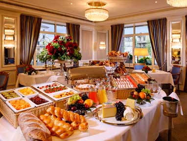 While restaurants abound in Zurich, the hotel offers Restaurant La Soupiere, a traditional French-style restaurant serving seasonal, market-fresh cuisine and Swiss specialities. The Cafe Gourmet et sa Boutique du Caviar is a cozy, small cafe serving snacks, salads and caviar.