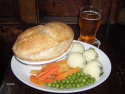 (left to right) Dining at one of Chef Michael Deane’s Belfast restaurants; Steak and Guinness pie is an Irish specialty