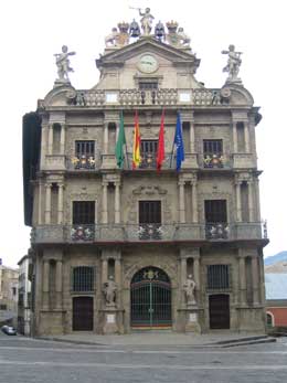 The Town Hall with its remarkable Baroque facade was built between 1753 and 1759 to replace the old one from the 15th century, which was falling into ruin. The launch of a rocket from the upper floor balcony at noon on July 6th each year marks the official beginning of the Festival of San Fermin.