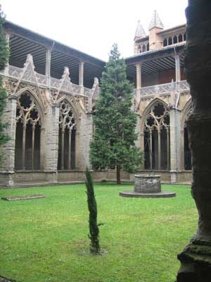 Be sure to visit the Cathedral of Santa Maria, in what was the old Borough of La Navarreria. Look for the magnificent alabaster tomb of King Carlos III of Navarre and his wife Eleanor, the 16th century stained glass windows and the 13th-14th century Gothic cloister, which is considered one of the finest in Europe. When the church’s ancient Romanesque exterior collapsed, it was replaced during the 17th century with a Neo-Classical facade, hiding the French-Gothic interior. The figure of Mary in the main altar under the silver canopy has been nicknamed “Mary of the Adopted Child,” since the child in the sculpture is a replacement for the original, stolen during the 16th century. For that reason many families present their adopted children here.