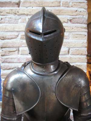 The Cafe Iruna, which looks out onto the Plaza del Castillo, was a favorite meeting place of Ernest Hemingway. It includes the Hemingway Bar, where a life-sized statue of Hemingway leans on the counter, awaiting your Kodak moment. This large cafe was the first location in Pamplona to install electric lights. With its mirrored walls and mirrored mosaic trim bordering the ceiling, the cafe demonstrated the new lights in 1888. Residents gathered inside with anticipation, and as the electric lights were turned on, they rushed in terror to the exits, suspecting witchcraft was responsible for the illumination. The cafe remains an everyday meeting place for the locals. A two-course meal with dessert and beverage costs 13 euros. Or just have coffee while you plan the rest of your route.
