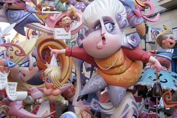Why the burning? Over past centuries, carpenters cleaned out their shops by making bonfires of wood scraps. It coincided with St. Joseph’s Day, the patron saint of carpenters, on March 19. The wood scraps took on doll-like shapes and then became effigies reflecting whatever face was griping the neighborhood. Today the fallas still poke fun but appear as elaborate polystyrene (styrofoam) painted works of art that can tower as high as a six-story building and cost more than $1 million to construct.