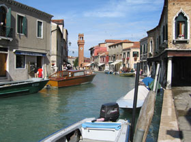 Once in Murano, you may want to continue on to the island of Torcello (whose cathedral was founded in 639) or Burano (distinct for its multi-colored homes and famous for the lace-making crafts). Take Vaparetto #13 from the dock located adjacent Murano’s lighthouse. (This requires walking across the canal and around Murano in order to get to the other Vaparetto stop).