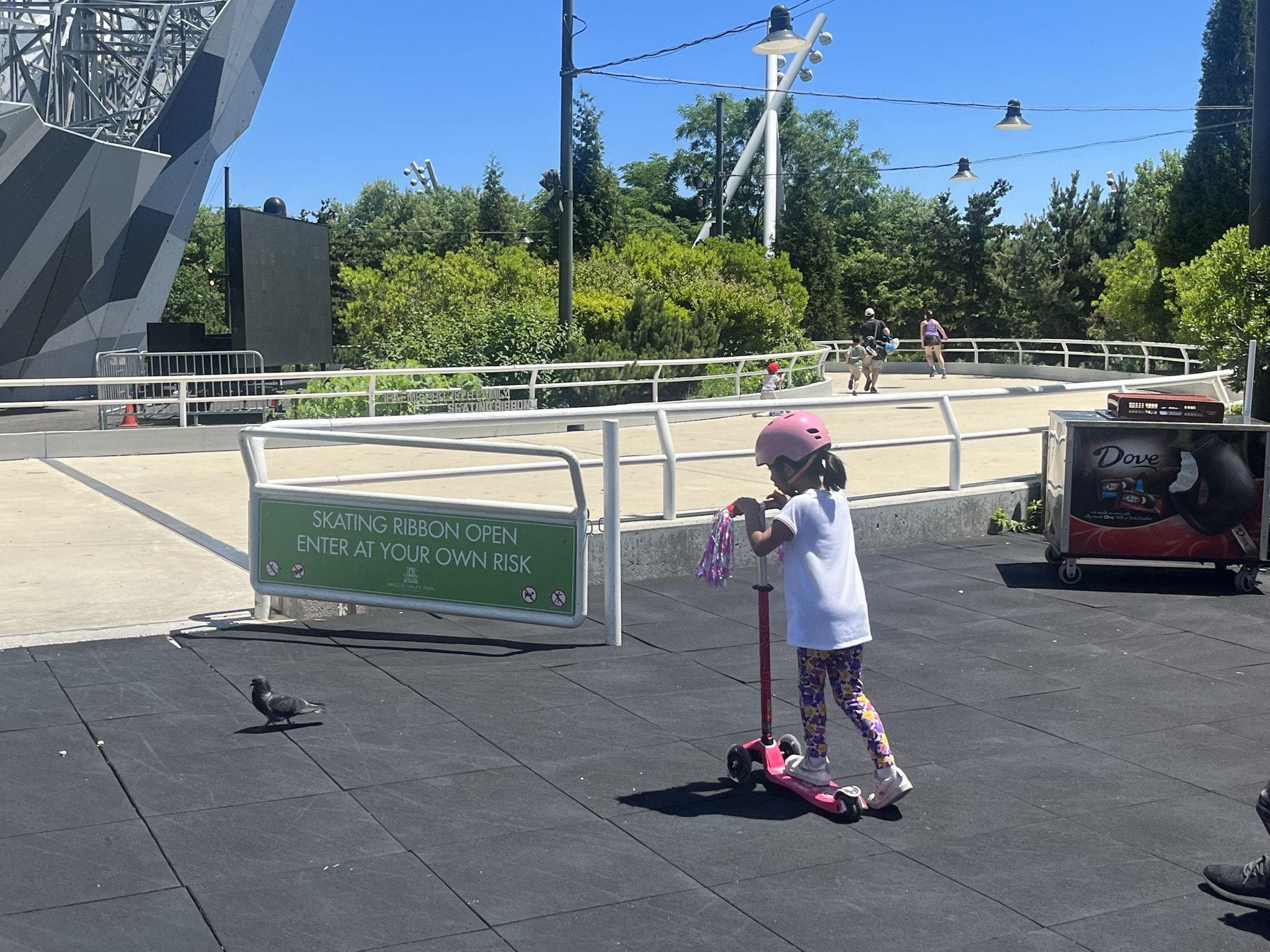 Other free areas include the tennis courts, picnic groves, Cancer Survivors’ Garden, and skating ribbon (rollerblades and Micro scooters are available to rent if you don’t bring your own equipment). For a fee and no reservations needed, visitors of any age can scale the Climbing Wall (shoes, helmet, and harness rental is offered), and kids aged 4-8 can even take a 15-minute climbing lesson with an instructor to assist them. Mini golf and a bungee jump are available for a fee. Conveniently located by the skating ribbon, the Rink Café food truck sells hot dogs, burgers, giant pretzels, ice cream, and other refreshments to enjoy under shady umbrellas.