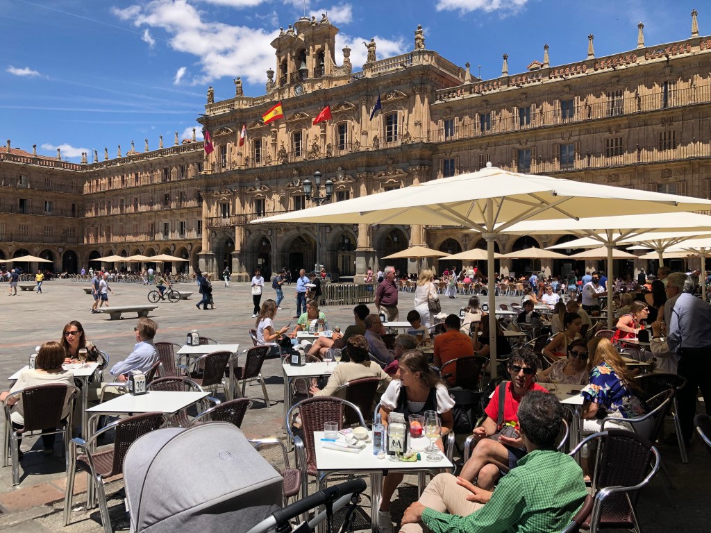 - Relaxing over tapas at a café on postcard-perfect Plaza Mayor, one of the largest and most beautiful squares in Spain. Try hornazo, a meat pie with layers of pork chorizo, pork loin and ham wrapped in lattice-crusted yellow dough.