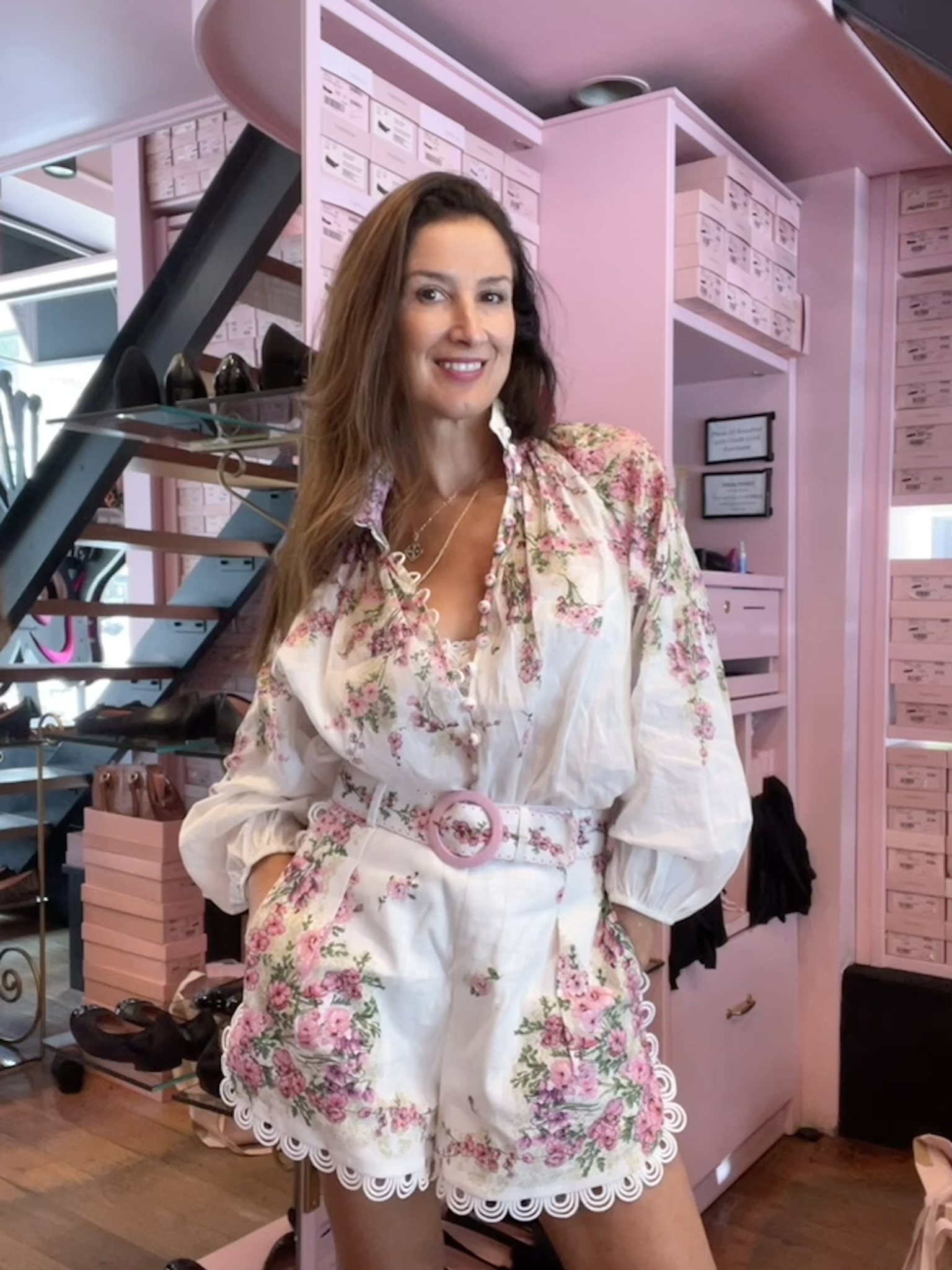 Fanny Cano, Pretty Ballerinas franchisee and owner of the New York City store, poses before the iconic pink boxes and glamorous storefront that identify this high-quality brand of Menorca-made women’s leather flats. Easily identifiable by a pink lining and stamped ballerina slipper icon on the underside, Pretty Ballerinas flats and matching handbags exhibit a unique style and luxurious leather silhouette. Top-left and bottom-right photos courtesy of Fanny Cano.
