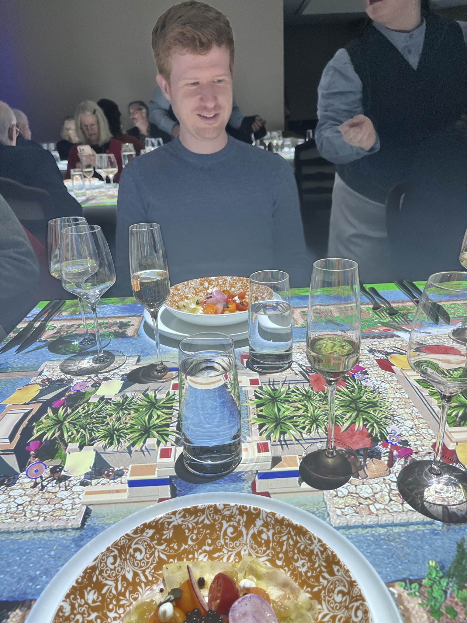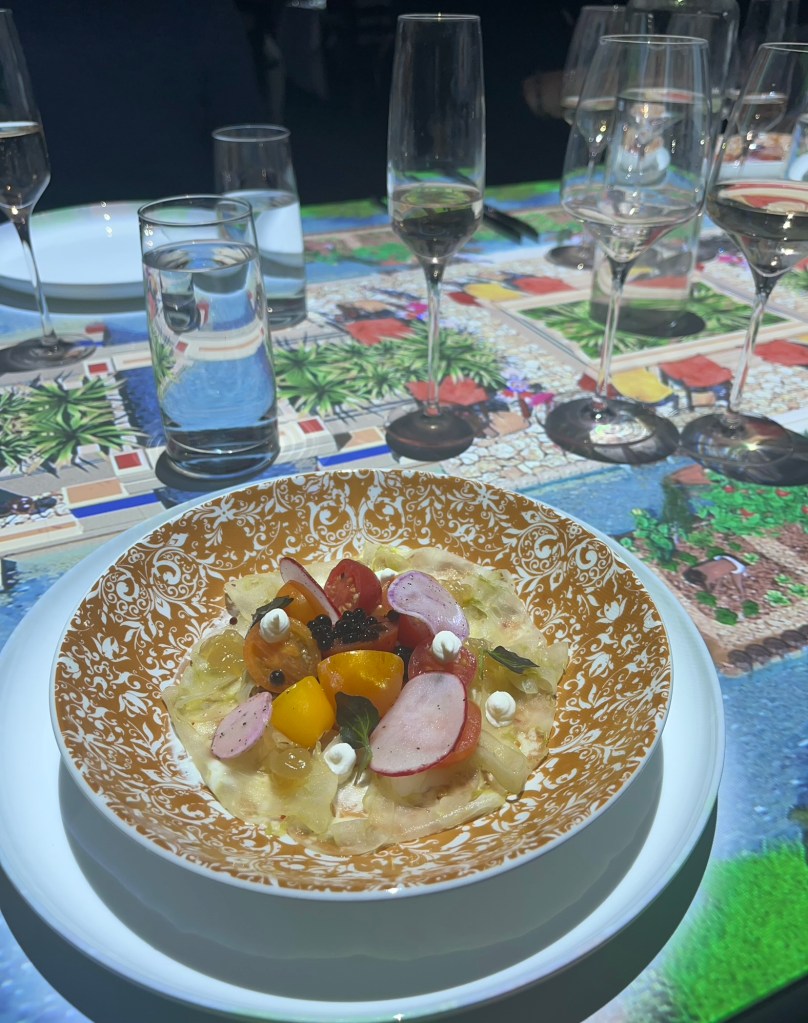 A simple white charger plate and smooth white table turn into a texture-rich artistic musical experience, culinary history lesson, and elaborate feast right before your eyes! Fairmont Chicago’s Le Petit Chef: An Immersive Dining Experience features a 2.5-inch animated French character created by artists at Skullmapping. Rising from the center of your plate via groundbreaking 3D projection mapping that requires no special eyeglasses or visors, Le Petit Chef illustrates through colorful storytelling the history of ingredients used in the meal, the joy of being a chef, and the art of creative plating inspired by famous painters. It’s a dining experience like no other, and Fairmont Chicago, in partnership with TableMation™, opened this exclusive gastronomical adventure to the public on January 19, 2023. The lobby level Cuvée Room at Fairmont Chicago houses this 90-minute themed dinner with curated wine pairings.