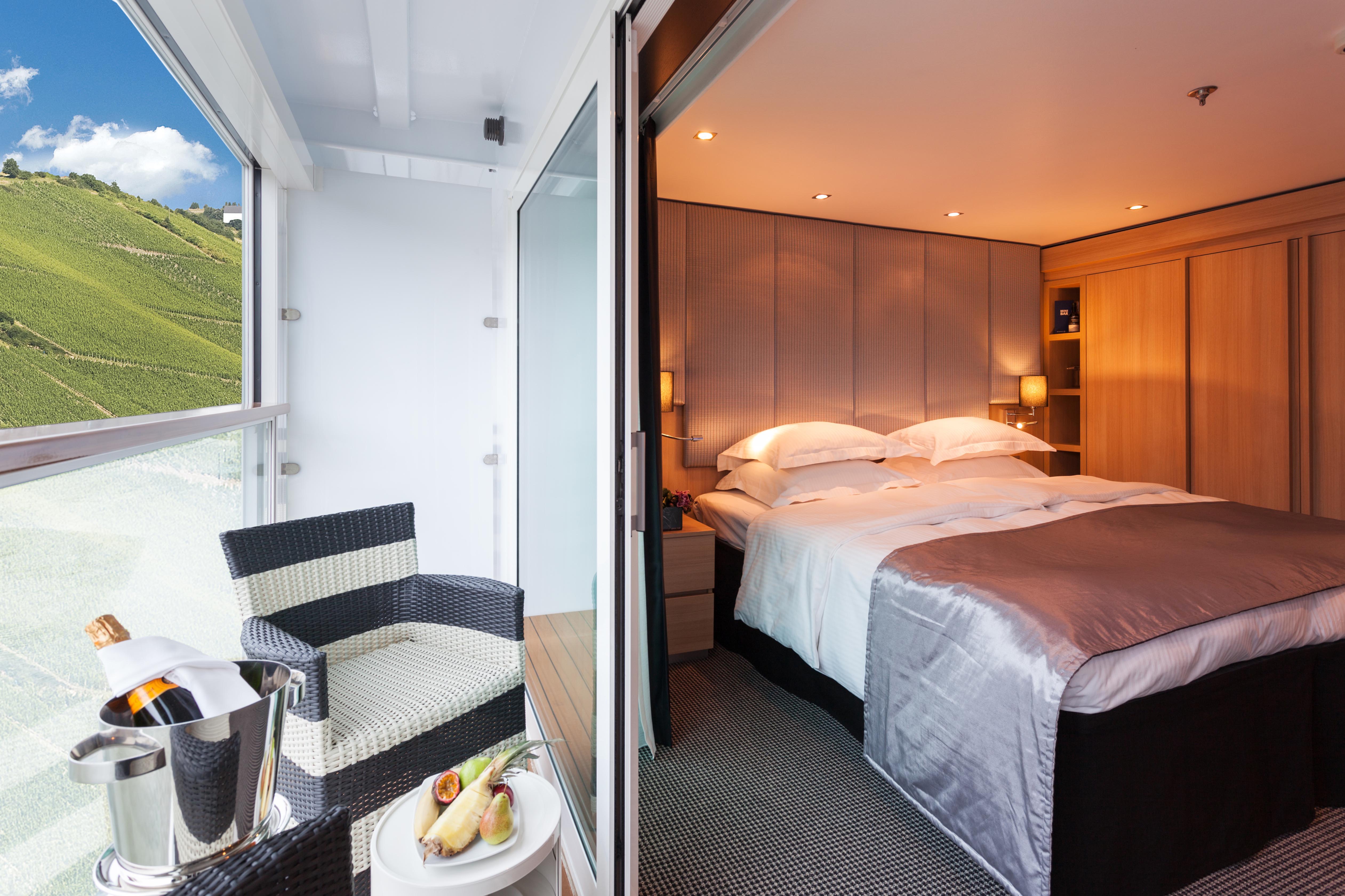 Left: Most cabins on the Scenic Opal have an enclosed balcony, or Sun Lounge, with a window that glides up and down at the push of a button. (Photo credit: Gillies & Zaiser)