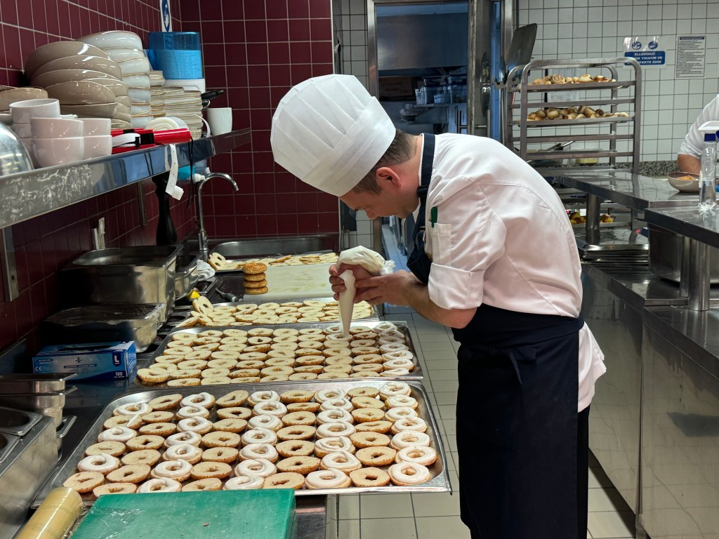 Agatha Restaurant’s bountiful buffet breakfast offers everything from salads and olives to cheeses, cold cuts and quail eggs. Pastries include mini donuts, mini croissants and simits, the sesame-seeded dough rings found throughout Turkey. For spreading on breads and rolls, I made good use of the honeycomb, tahini, grape molasses, jams and clotted cream. I had more than my share of the cheese balls covered in sesame seeds, black cumin, pistachios or poppy seeds. Among the hot dishes: cheese quiche, cheese soufflé, falafel, artichoke soup, pancakes and porridge.