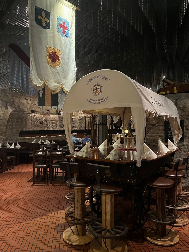 Tour the Old Town and learn about the city’s history while riding the Mini Train, which departs from the Beautiful Fountain at the Main Market Square and takes you on an almost hour-long loop in and around thHausbrauerei Altstadthofe city while multi-language audio headsets announce historical landmarks and relay town stories. One legend tells of German robber Eppelein von Gailingen, who allegedly escaped execution by leaping off the castle and over the moat and city wall on his horse, leaving behind hoofprints on the roof. You’ll see the half-timbered historical building built in 1446 that once housed lepers for three days during Holy Week (to provide them medical attention, clothing, and food), then became a wine storage depot, and now functions as student housing. You’ll also spot the Hangman’s Bridge, a wooden footbridge over the Pegnitz River used solely by the Nürnberg hangman between the 16th and 19th century to travel between his secluded home on a small island in the Pegnitz into the city, as a Middle Ages rule forbade him from contact with “honorable citizens.”